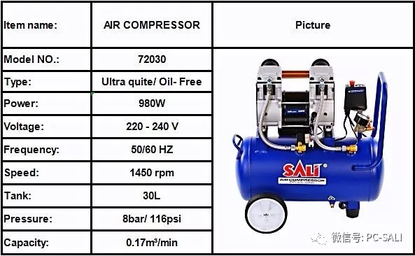 Peb pom zoo rau koj SALI Air compressor series hauv lub lim tiam no. Hauv qab no yog cov khoom' cov ntaub ntawv nthuav dav: